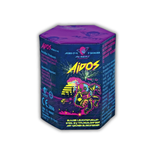 Die Batterie Albert AC20-7-4 Aidos bietet 7 Schuss mit blauem Leuchtspuraufstieg zu prachtvollen Titangoldweiden, die von grünen Blinksternen begleitet werden. Ein starker Effekt zum besonders günstigen Preis – ideal für preisbewusste Feuerwerksfreunde.