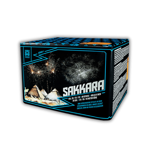 Die Argento Sakkara (ACM40-1) ist eine 40-Schuss-Feuerwerksbatterie im Kaliber 20–30 mm. Drei unterschiedliche Effekte steigern sich im Kaliber und werden zunächst einzeln, dann in imposanter Fächerung geschossen: Titangold-Schweifaufstieg zu prachtvollen Titangoldweiden mit Brokatsternen, farbenfrohe Blinkschweifaufstiege in Rot und Grün zu bunten Blinksternbuketts sowie silberne Cracker-Schweifaufstiege zu explosiven Silbercrackern mit Dahliensternen in Lemon, Purpur und Blau. Eine abwechslungsreiche und eindrucksvolle Silvesterbatterie.