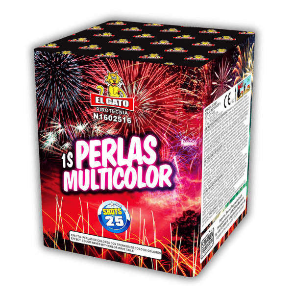Die Batterie Perlas Multicolor 1 Sek liefert 25 Schuss mit kräftigen Zerlegern und eindrucksvollen, bunten Effekten. Als Finalbatterie sorgt sie für einen farbenfrohen Höhepunkt, der garantiert Eindruck hinterlässt.