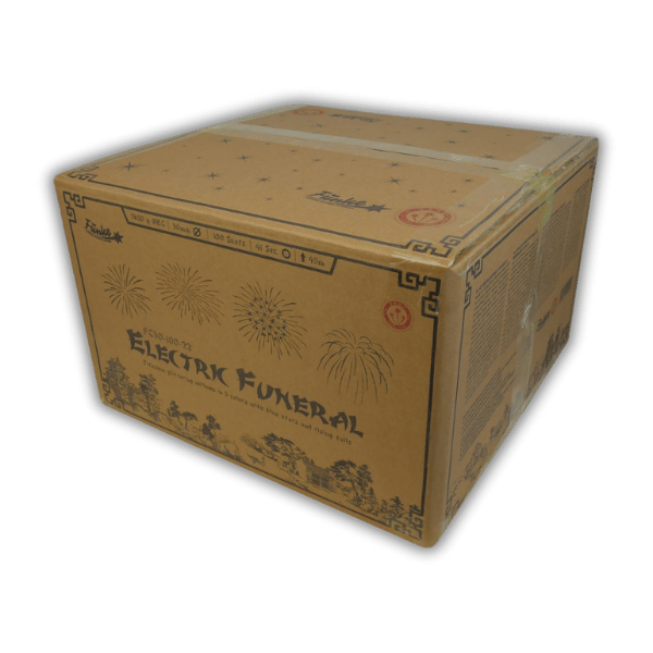 Der Funke Electric Funeral ist ein 100-Schuss-Verbundfeuerwerk der Kategorie F3, das eine immense Show liefert. Mit satten 2,65 kg NEM im 30 mm Kaliber feuert dieser Cake über ca. 41 Sekunden hinweg Effekte bis zu 60 Meter hoch. Im Fokus stehen gigantische Titan-Blinkweiden in Rot, Grün und Weiß, die mit blauen Sternen kombiniert werden und teils mit heftigen Titanzerlegern abschließen. Ein brutales und beeindruckendes Profi-Verbundfeuerwerk für Pyrotechniker. Abgabe nur an Inhaber einer behördlichen Erlaubnis.
