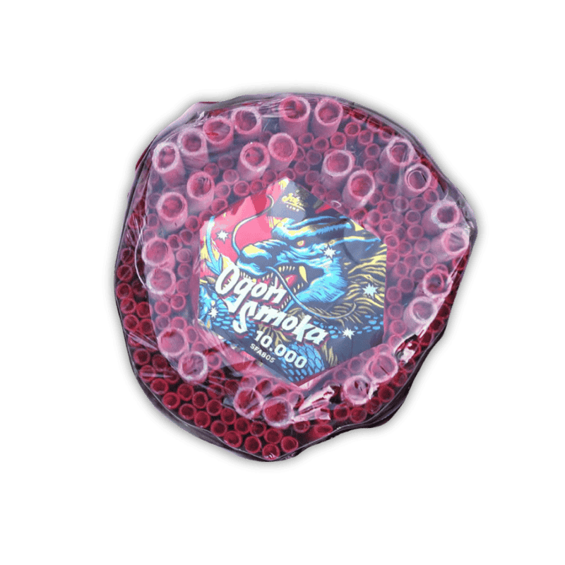Die BlitzRums Multiple (Celebration Cracker 10.000) ist eine extrem leistungsstarke Flash-Banger Cracker Batterie der Kategorie F3 mit der Klassifikation 1.3G. Diese Batterie ist darauf ausgelegt, unerbittliche Salven donnernder Knalle in schneller Abfolge zu liefern. Mit einem NEM von 79g bietet sie maximale Intensität und Lautstärke. Perfekt für den Einsatz als lautstarkes Finale oder für jeden Höhepunkt, der puren Lärm und unaufhörliche Action verlangt. Die Schnellfeuer-Sequenz aus Small-Bore Schüssen garantiert eine kurze, aber extrem intensive Darbietung.