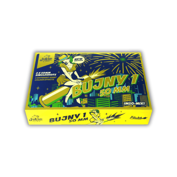 Die Iskra Bujny 1 [Batch 2025] sind mächtige Bombenrohre der Kategorie F3 im beeindruckenden 50 mm Kaliber. Als würdiger Nachfolger legendärer Kaliber liefern sie kräftige Zerleger in drei Haupt-Effekten: Titangoldweiden mit blauen Sternen, Corolla mit grünen Blinksternen und mächtige Brokatkronen mit Weißblinkern.