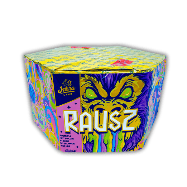Die Iskra Rausz ist eine wuchtige 61-Schuss-Batterie der Kategorie F3 für ein minutenlanges, intensives Feuerwerk. Mit satten 995 g NEM im 30 mm Kaliber schießt dieser I-Shape-Cake seine Effekte bis zu 45 Meter hoch. Die Show ist ein wahrer Rausch aus Farben und Gold: Brokatkronen mit lila Sternen, Dahlienbuketts mit blauen Blinkern, und Goldpalmen mit massiven Cracklingwolken. Ein Premium-Cake mit extrem hoher Satzdichte für Pyrotechniker. Abgabe nur an Inhaber einer behördlichen Erlaubnis.