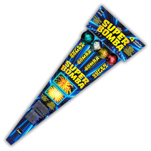 Die Jorge Super Bomba ist ein 4er-Sortiment an Kugelkopf-Raketen im wuchtigen 50 mm Kaliber – ideal, um das Finale deines Feuerwerks zu toppen. Die Raketen steigen mit brillantem Corollaschweif bis zu 50 Meter hoch und zerlegen in massive Buketts mit 4 verschiedenen Premium-Effekten. Freue dich auf riesige Brokatkronen, Violette Dahlien mit Crackling und leuchtenden Goldregen-Effekten (Time Rain), die mit lauten Blitzzerlegern abschließen.