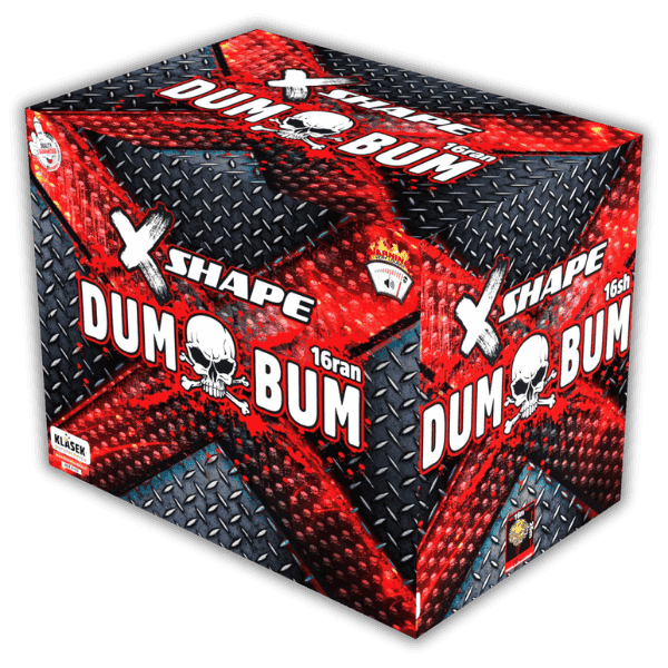 Die Batterie Dumbum X-Shape von Klasek ist eine extrem laute 16-Schuss-Fächerbatterie. In rasanter Abfolge entfaltet sich ein kompromissloses Salutinferno – kurz, heftig und unverkennbar Dumbum.
