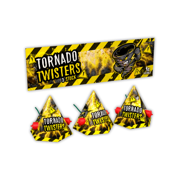 Die Lesli Tornado Twister liefern pfeifende, sich drehende Aufstiege mit grün knisternden Lichtern – blitzschnelle Wirbel-Effekte für rasante Action am Himmel.