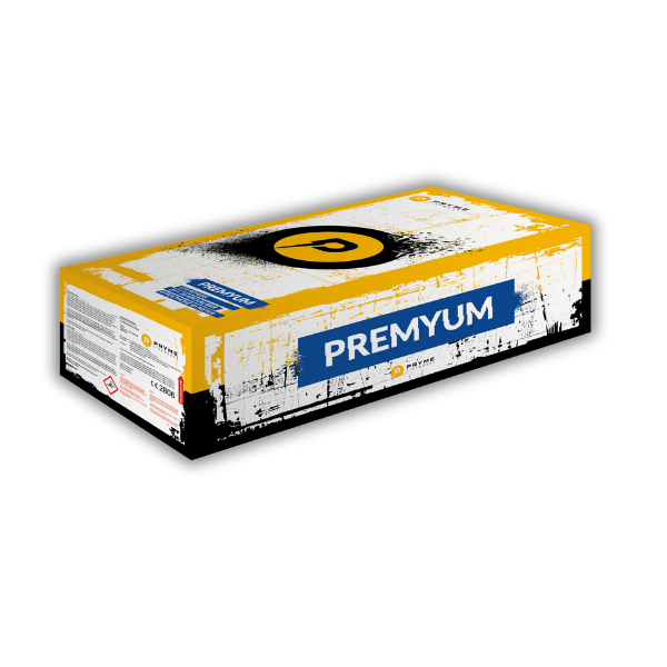 Die Pryme Premyum ist ein kraftvolles Verbundfeuerwerk der Kat. F2 mit abwechslungsreichen Fächerungen und Schussfolgen: I-, Z-, Fan- und W-Shape. Die Effekte reichen von goldenen Willow-Buketts mit farbigen Blinksternen über Brokatkronen mit Schweif und verschiedenfarbigen Sternen bis hin zu intensiven Rot-, Grün- und Blau-Blinkern. Dank der Vielzahl an Feuertöpfen, Blink- und Kroneneffekten entsteht ein dynamisches und farbenprächtiges Gesamtbild. Achtung: Gefahrgutklasse 1.3G – nur Abholung an Pryme Stationen oder bei Fachhändlern möglich.