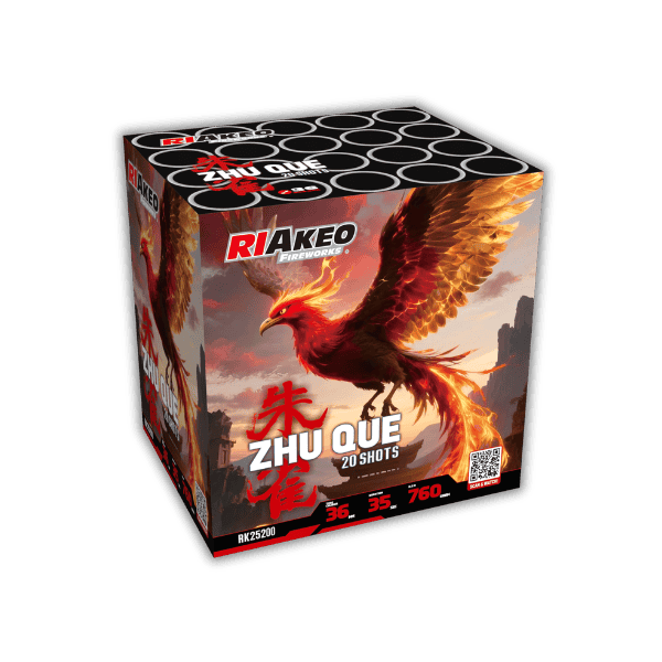 Die Zhu Que ist eine brachiale F3-Batterie von Riakeo, die mit massiven 36mm Kaliber und vollen 800g NEM für maximale Himmelpräsenz sorgt. Diese 20-Schuss-Maschine besticht durch ihre professionelle Effektführung und eine außergewöhnliche Farbdichte. Wie von Riakeo gewohnt, erwartet dich ein extrem druckvoller Zerleger und eine raumfüllende Bukettausbreitung mit beeindruckender Standzeit. Ein absolutes Kraftpaket für jedes F3-Finale, das keine Kompromisse bei der Effektgröße macht.