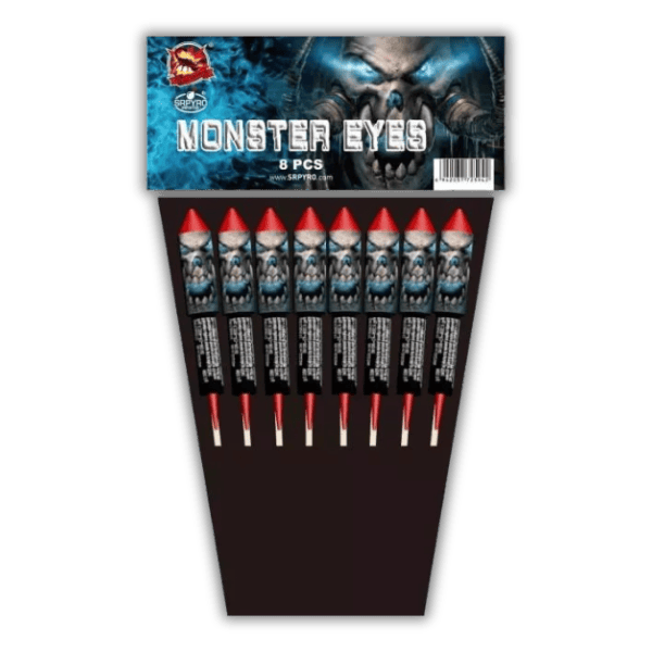 Die SR Pyro Monster Eyes sind ein 8er-Sortiment an spezialisierten Raketen. Sie liefern ein maximal akustisches Erlebnis: Jeder Aufstieg beginnt mit einem grellen, schrillen Pfeifton und gipfelt in einem kräftigen Salutknall (Banger). Ideal, um dein Feuerwerk mit lauten, schnellen und aufregenden Knalleffekten zu ergänzen.